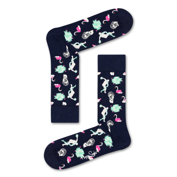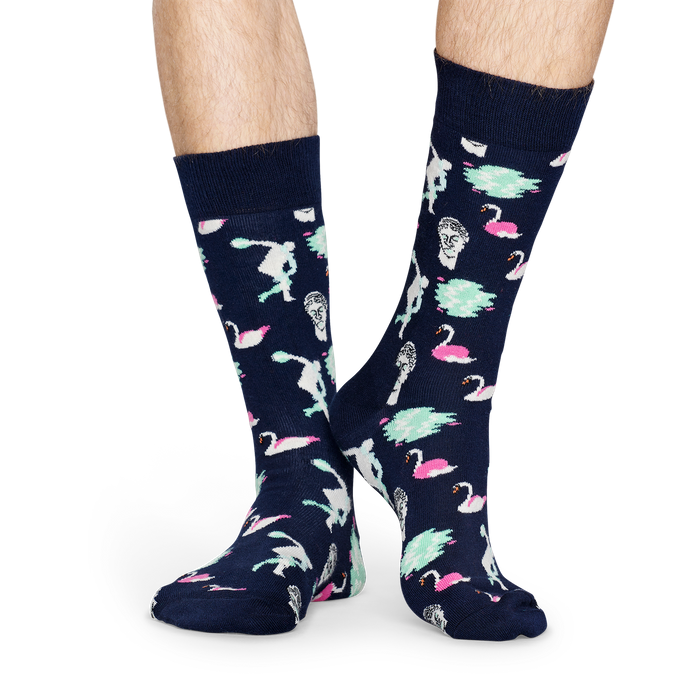Feel serene, live the dream, and make every day a midsummer’s day with these peaceful Park Happy Socks in navy, white and mint. Featuring a Roman statue, swans, and a placid lake, these socks are perfect for promenading in your favorite chinos. Made with comfortable combed cotton.
