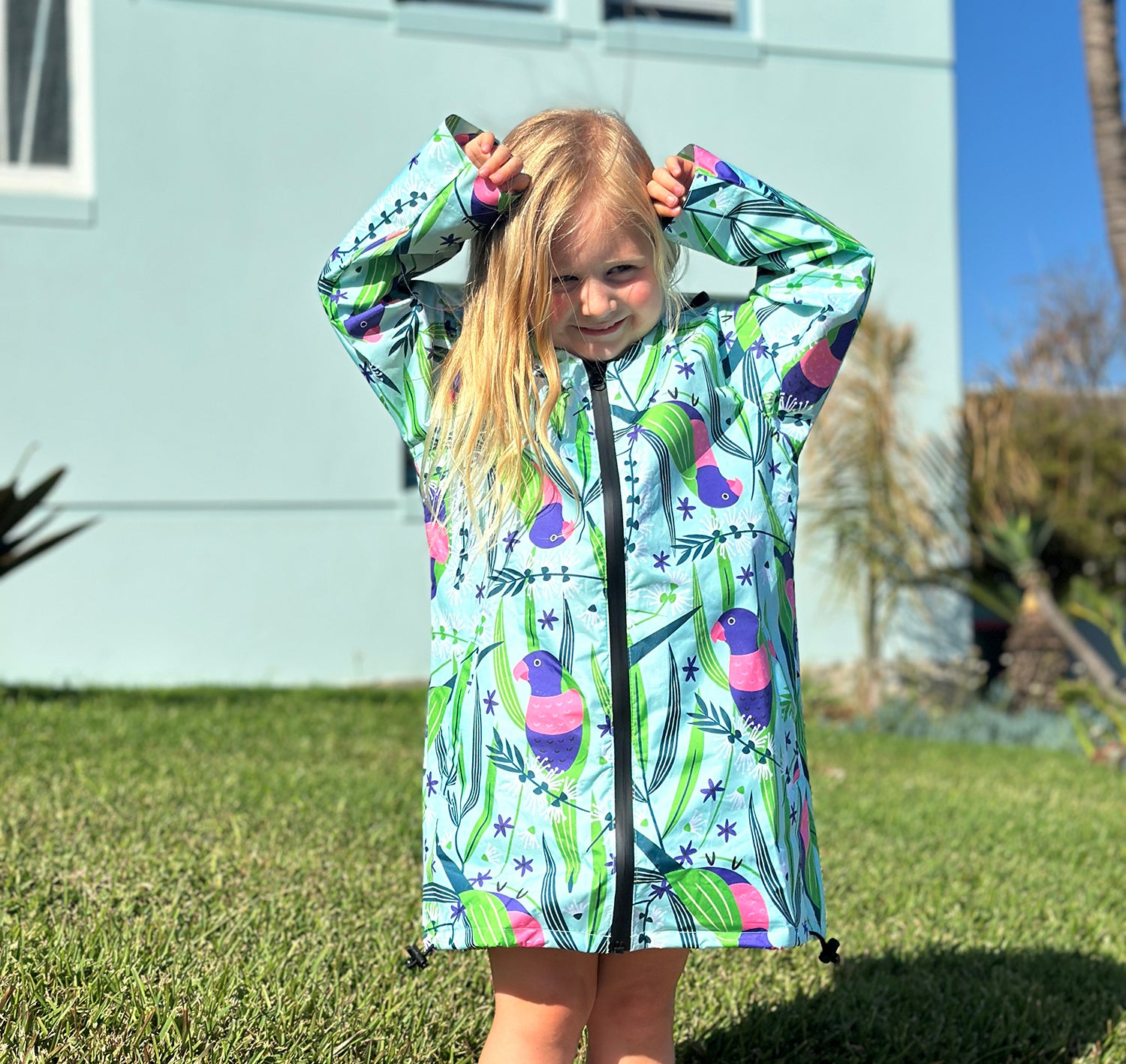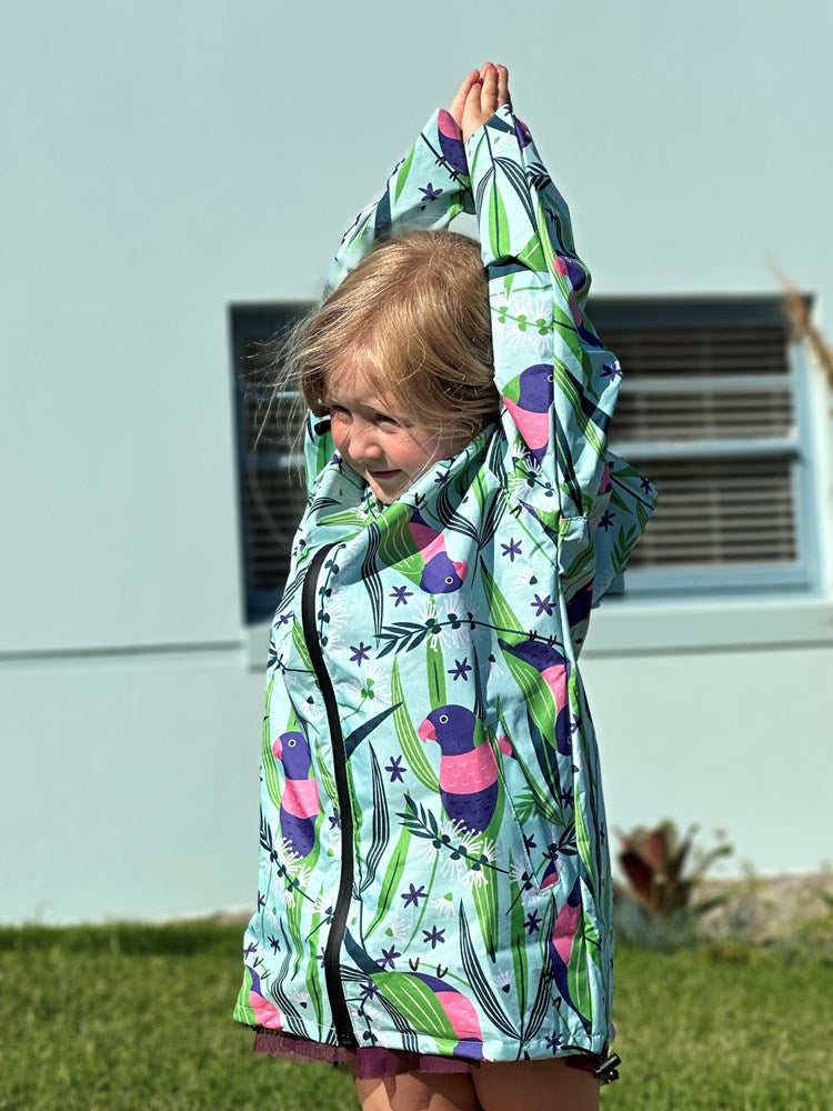 Finally a way to keep dry in your favourite designs! Each raincoat is water resistant and features a hood and adjustable pull toggles through the bottom to help keep you nice and dry. Fits are loose and have extra space for you to wear a backpack under the raincoat.